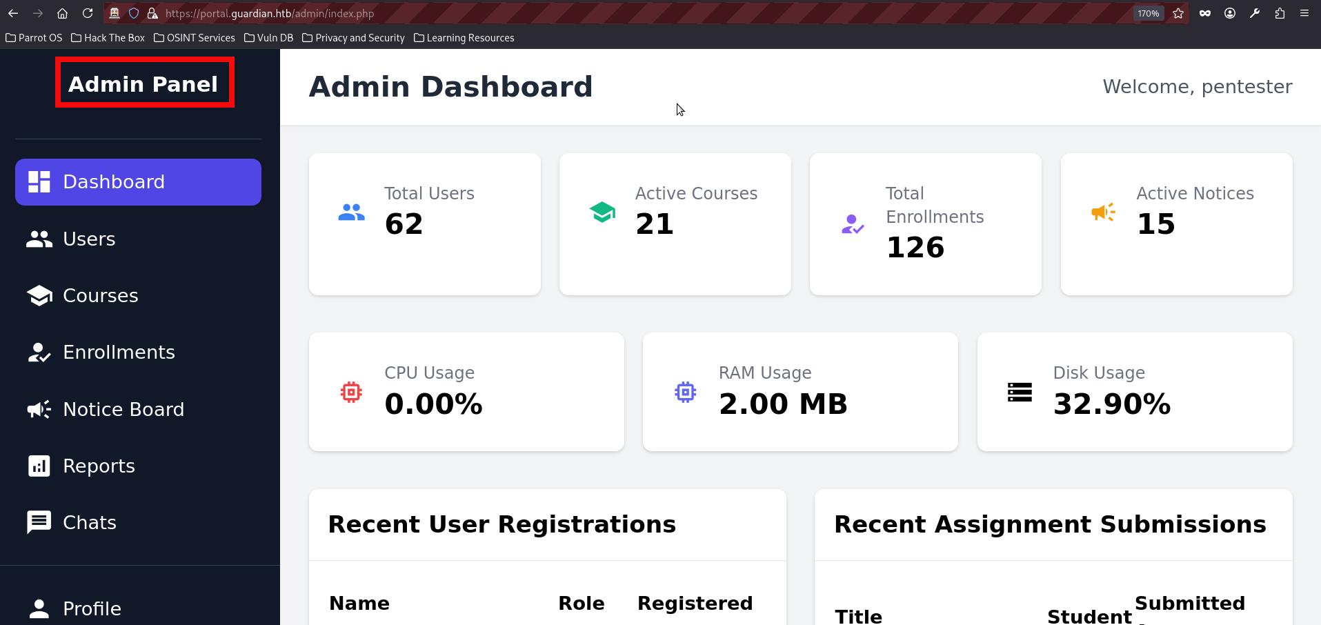 - We had finally reached the admin dashboard, but the journey was not over yet. At first glance, the available functionality did not reveal any immediately obvious opportunities for further exploitation. With that in mind, we once again turned to the source code to review the admin-side features and eventually found something interesting in reports.php: